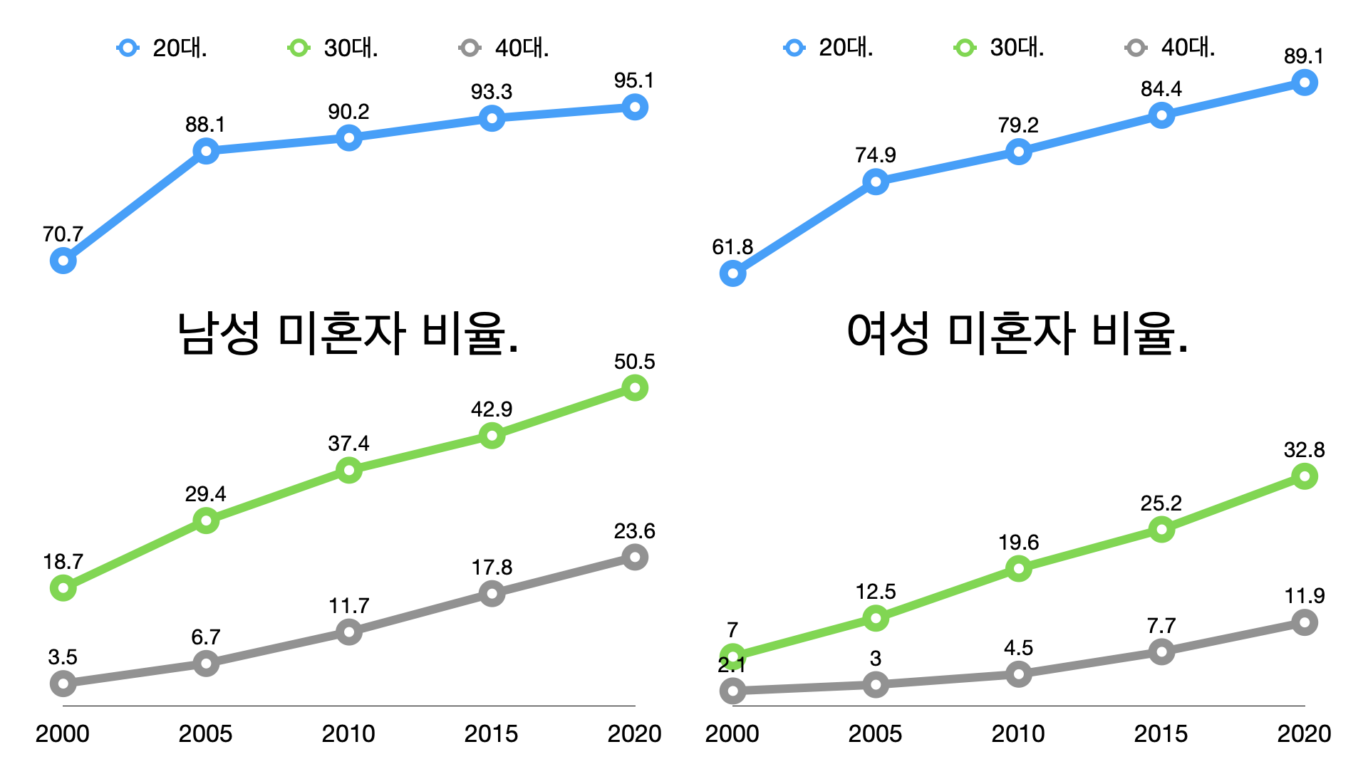 40๋ ๋ฏธํผ์ ๋น์จ์ด ๋จ์ฑ์ 23.6%, ์ฌ์ฑ์ 11.9%์๋ค.