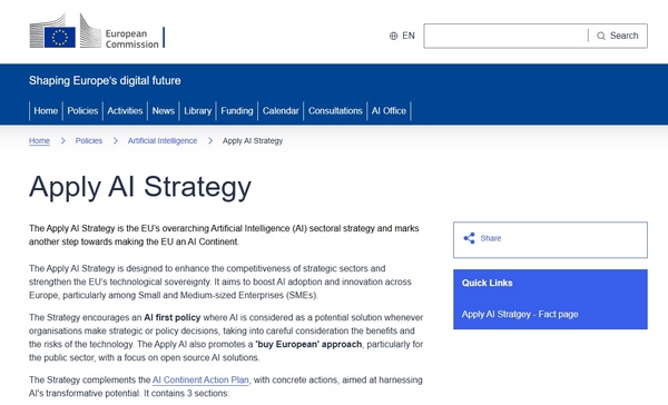 유럽 연합이 AI 대륙 액션 플랜을 발표한 게 지난 4월이었다. 이번에 발표한 전략은 주요 산업 및 공공 부문에서 AI 활용을 가속화하는 방안을 제시하며 유럽이 AI 산업과 과학 분야에서 각각 선두를 유지할 수 있도록 두 가지 전략을 제시했다. 'AI 적용' 전략과 '과학 분야 AI' 전략은 이러한 목표를 달성하고 EU가 핵심 분야 및 과학 분야에서 AI 활용을 가속화할 수 있도록 하는 액션 플랜 다음 단계이다. 이 전략은 다음과 같은 주요 과제를 다룬다.