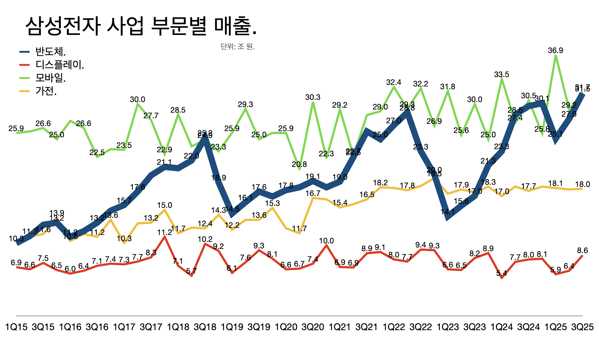 - ์ง๋ํด 3๋ถ๊ธฐ๋ ์ด๋ ์ผํฌ์๋๋ฐ ํ์ด ๋ฌ๋ผ์ก๋ค. โ์ํ ์๊ฐ๋ฝโ์ด๋ผ๋ D๋จ ๊ฐ๊ฒฉ์ด ๋ฐ๋ฑํ๋ค. ์์๊ฐ ์ด์๋๊ณ ๊ฐ๊ฒฉ๋ ์ข๋ค. HBM(๊ณ ๋์ญํญ ๋ฉ๋ชจ๋ฆฌ) ํ๋งค๋ ๋๊ณ ์๋ค. 6์ธ๋ HBM4๋ฅผ ์ธ์ ๋ด๋๋๋๊ฐ ๊ด๊ฑด์ด๋ค. ๋ถ๋ฌธ๋ณ ์ค์ ์ ๊ณต๊ฐํ์ง ์์์ง๋ง ์กฐ ๋จ์ ์ ์๋ฅผ ๋ด๋ ํ์ด๋๋ฆฌ ์ฌ์
