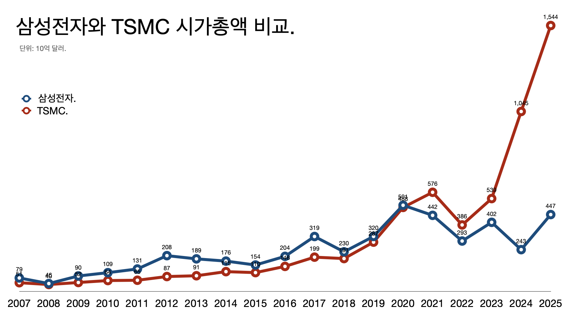 ์ฐ๋ด์? TSMC๊ฐ 1.6์ต ์ ์ ๋๊ณ ์ผ์ฑ์ ์๋ 1.3์ต ์ ์ ๋๋ค. ์ฑ๊ณผ๊ธ์ ๋ํ๋ฉด TSMC๋ ์ง๋ํด 2.5์ต ์ ์์ค์ด๋ค.