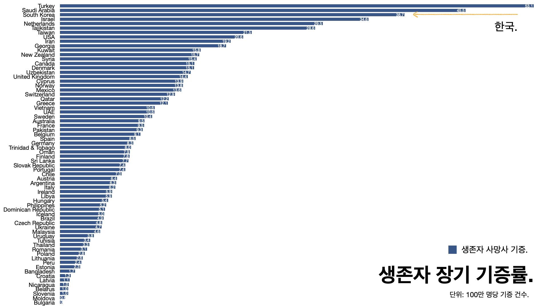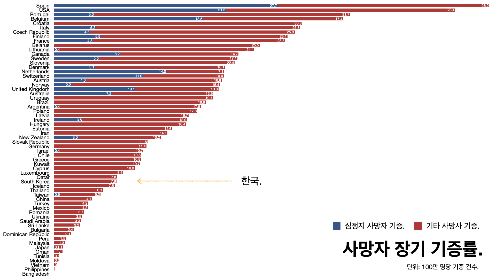 ํ๊ตญ์ ์ฌ๋ง์ ์ฅ๊ธฐ ๊ธฐ์ฆ์ด 100๋ง ๋ช ๋น 7.8๋ช ์ด๋ค.