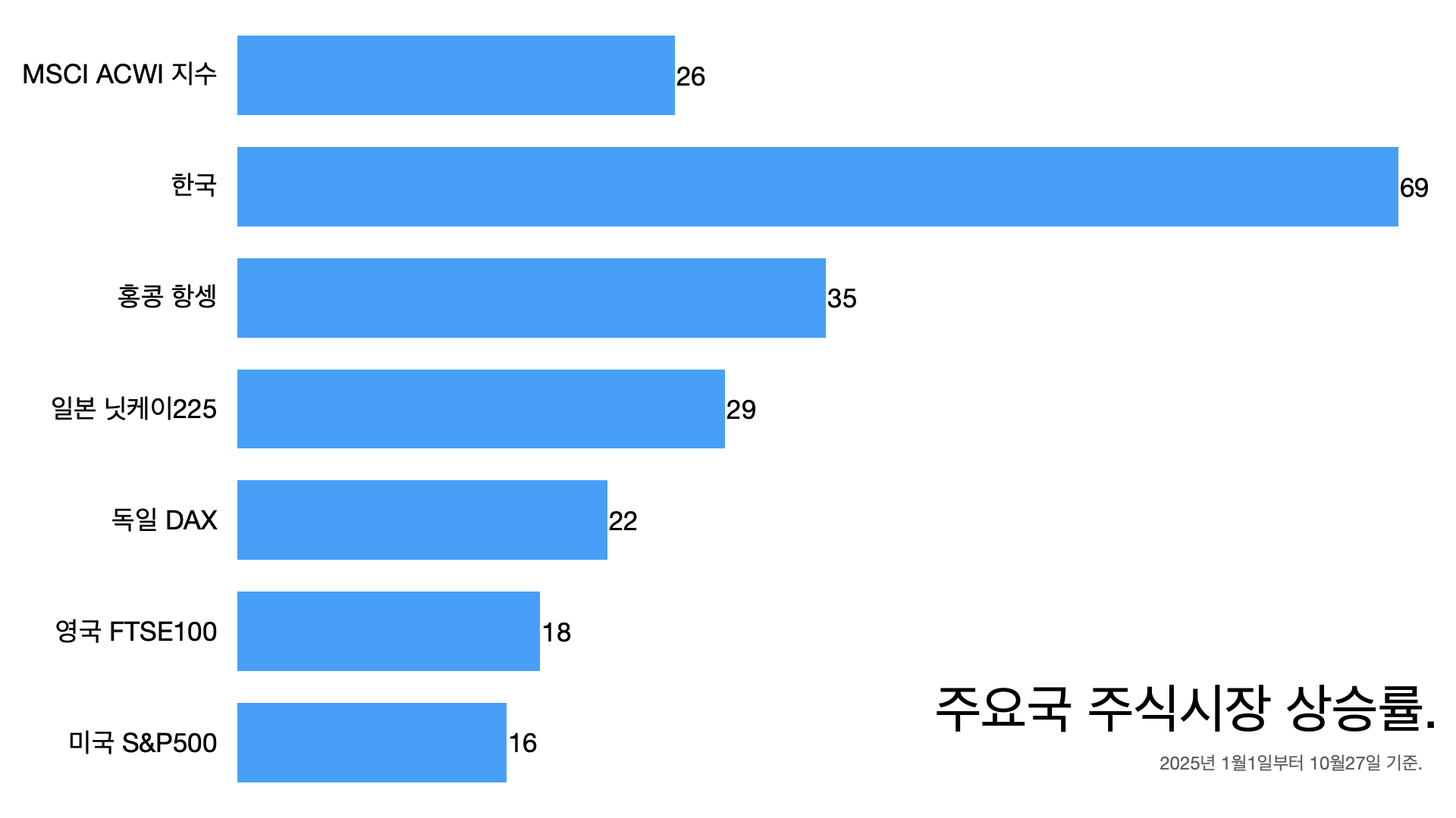 - ์ฌํด ๋ค์ด ๋ฏธ๊ตญ S&P500์ด 16% ์ค๋ฅผ ๋ ์ฝ์คํผ๋ 69% ์ฌ๋๋ค.