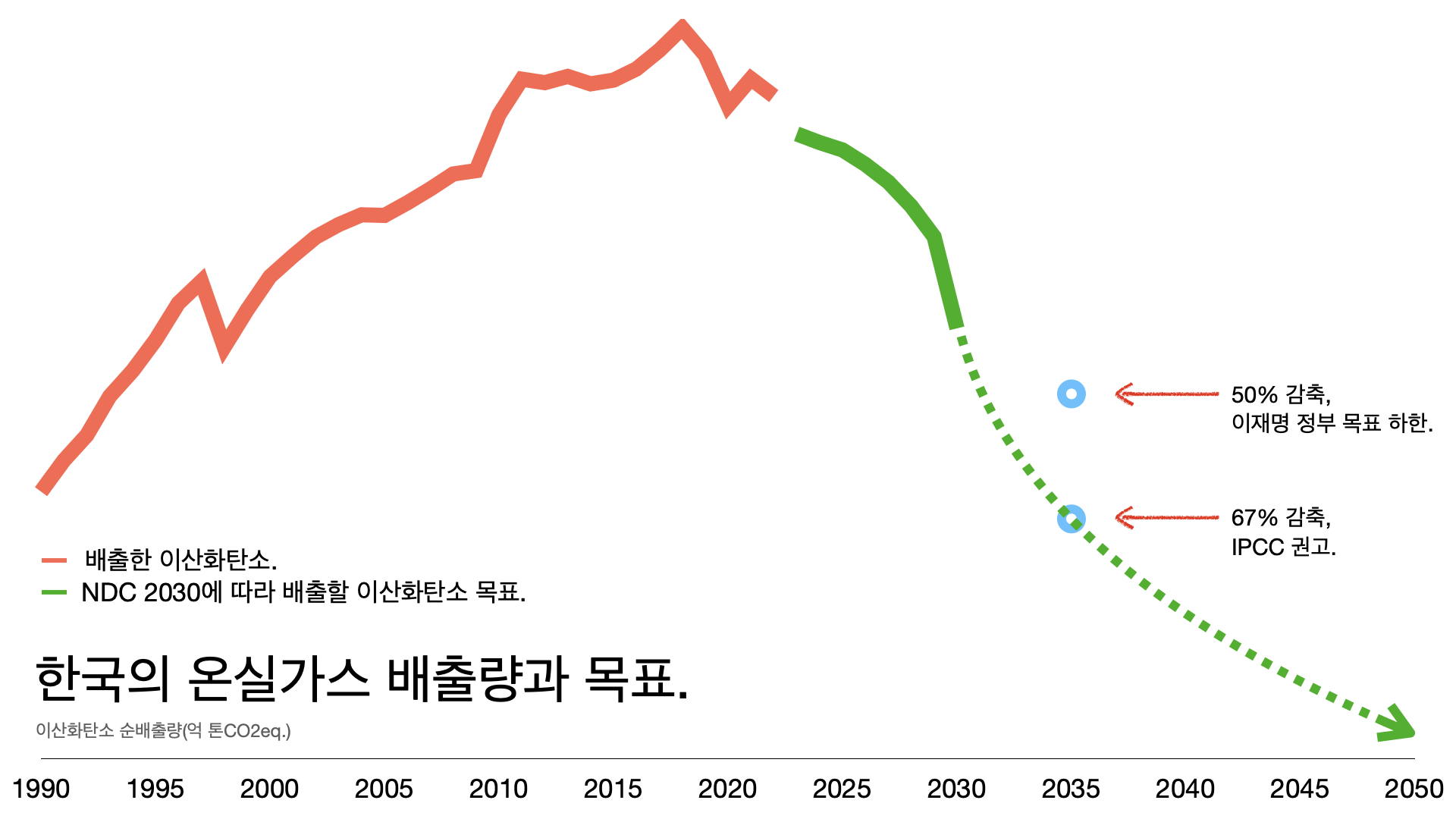 ํ๋ฆฌ ํ์ฝ์ ๋ฐ๋ผ 5๋ ๋ง๋ค 10๋ ๋ชฉํ(NDC)๋ฅผ UN์ ๋ด๋๋ฐ ์ง๊ธ ๋ ผ์ํ๋ ๊ฒ 2035๋ ๊ฐ์ถ ๋ชฉํ๋ค.