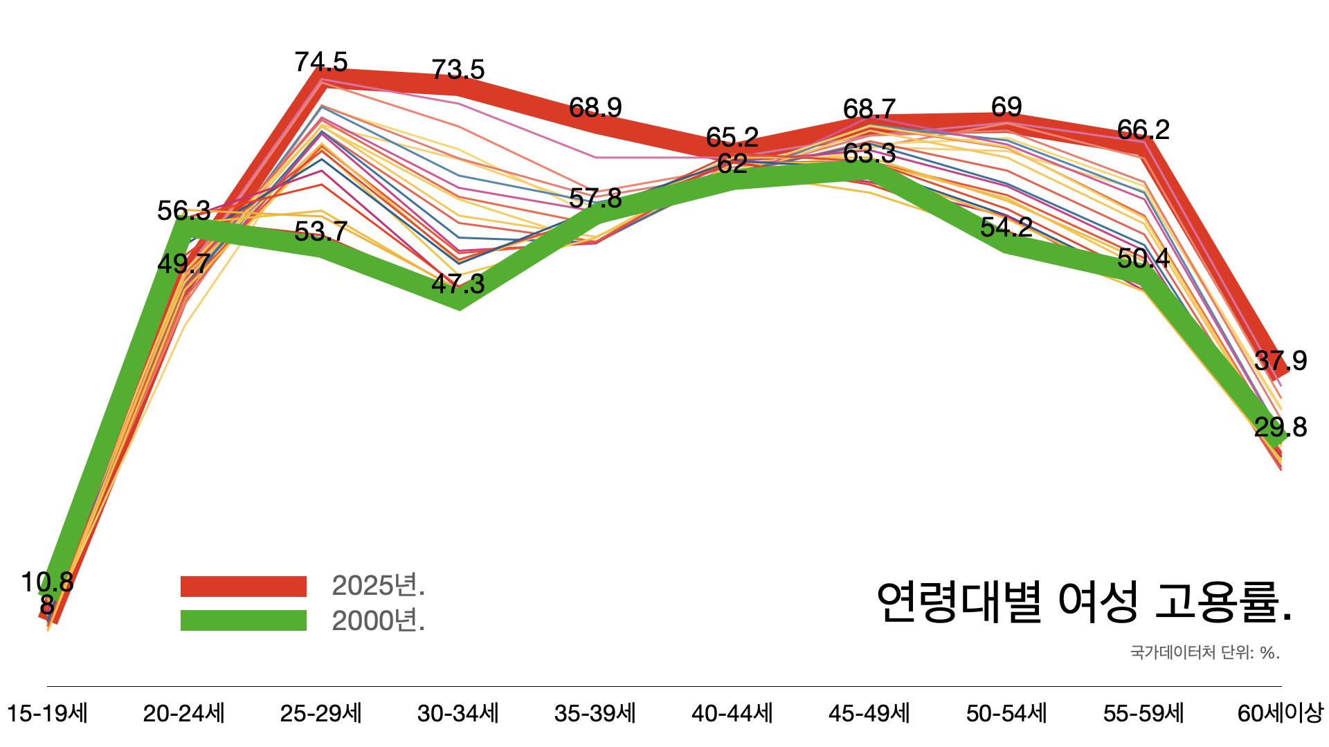 ๋ ๋ถ์๋ ๋์จ๋ค. 30๋์ ์ฌ์ฑ ๊ณ ์ฉ๋ฅ ์ด ๋ฎ์์ก๋ค๊ฐ 40๋๋ถํฐ ๋์์ง๋ ํ์์ ๋งํ๋๋ฐ 30๋ ์ฌ์ฑ ๊ณ ์ฉ๋ฅ ์ด 4๋ ์ฐ์ ์ฌ๋ผ 40๋ ๊ณ ์ฉ๋ฅ ์ ๋์ด์ฐ๋ค.