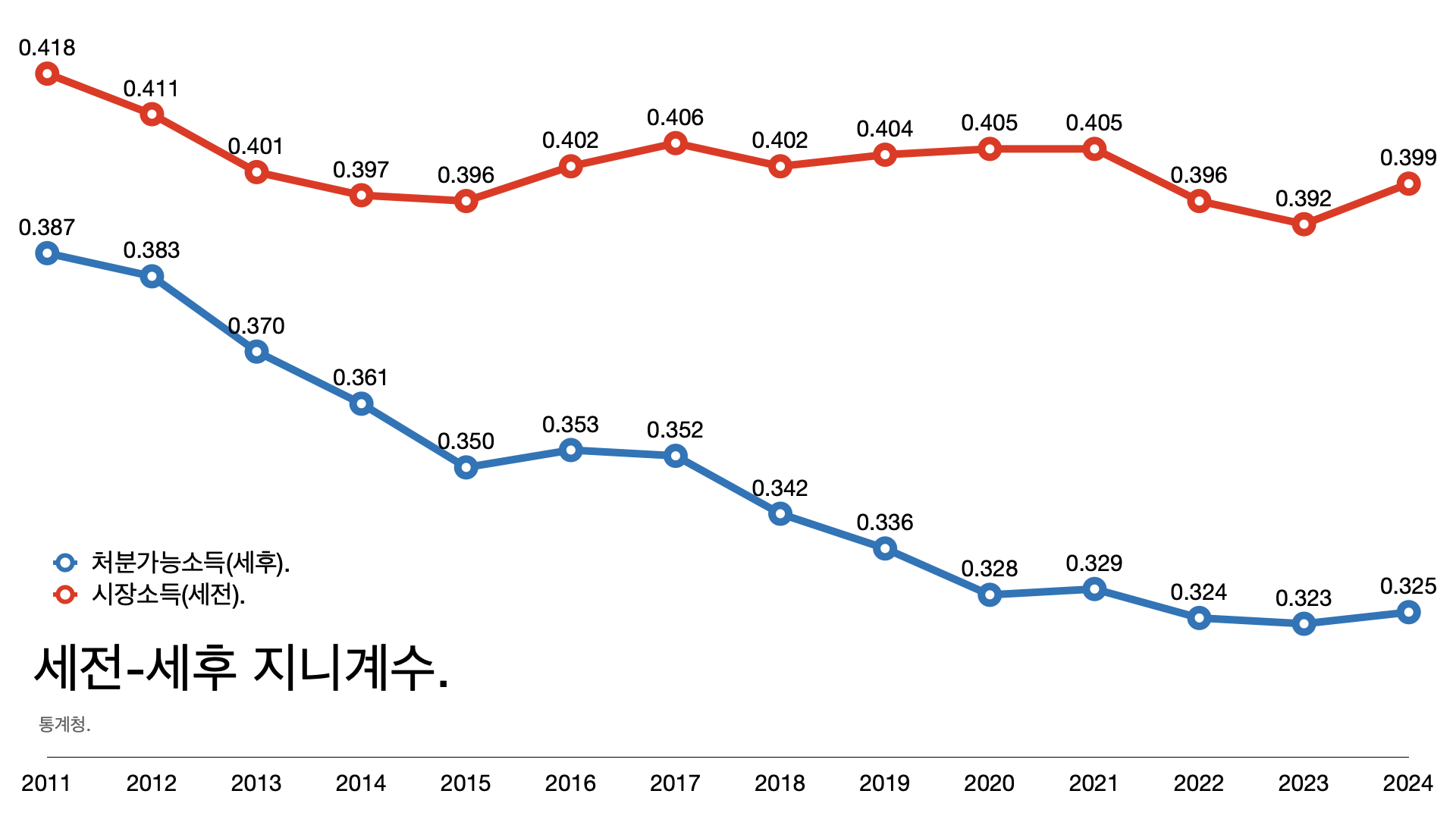 ๋ถํ๋ฑ ์ ๋๋ฅผ ๋ํ๋ด๋ ์ง๋๊ณ์๋ ์์ฅ ์๋ ๊ธฐ์ค์ผ๋ก 0.323์์ 0.325๋ก ์ฌ๋๊ณ ์ฒ๋ถ ๊ฐ๋ฅ ์๋ ๊ธฐ์ค์ผ๋ก๋ 0.392์์ 0.399๋ก ์ฌ๋๋ค. ์ง๋๊ณ์๋ 1์ ๊ฐ๊น์ธ์๋ก ๊ฒฉ์ฐจ๊ฐ ํฌ๋ค๋ ์๋ฏธ๋ค.
