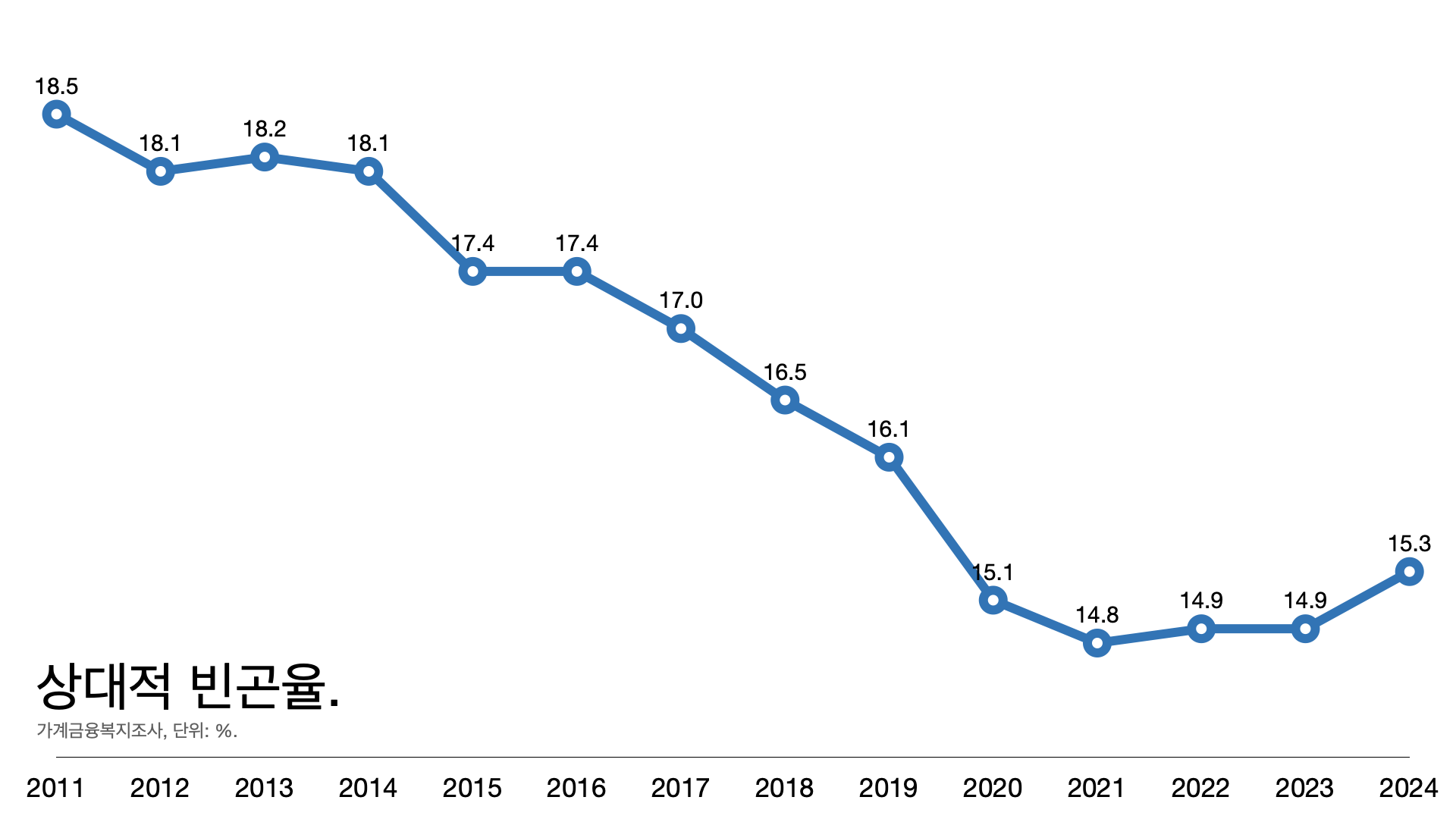 ์๋์ ๋น๊ณค์จ์ 14.9%์์ 15.4%๋ก ์ฌ๋๋ค.