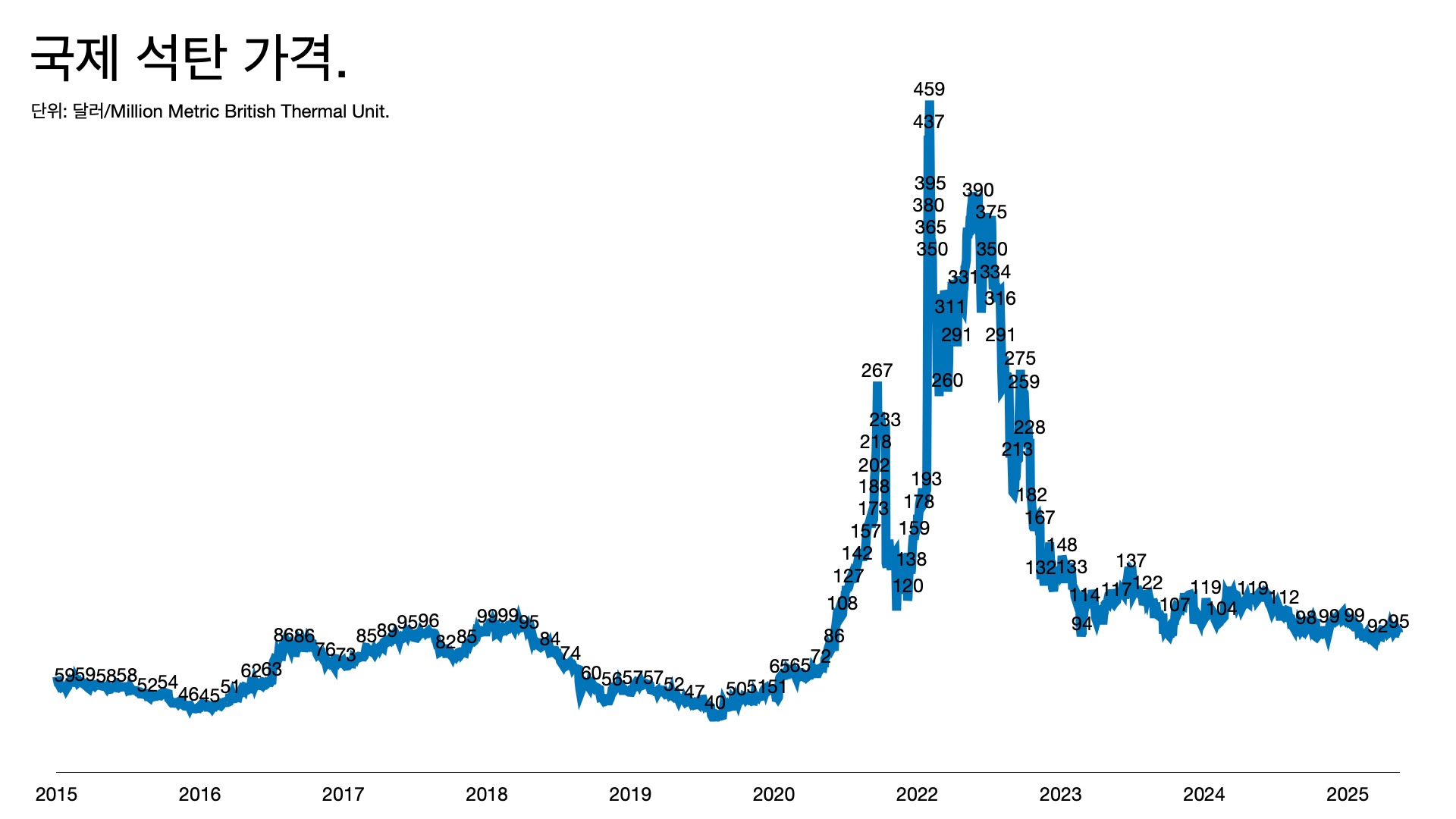 - 석탄 가격도 변동성이 크다. 그때마다 전기요금도 급등락을 거듭했다.
