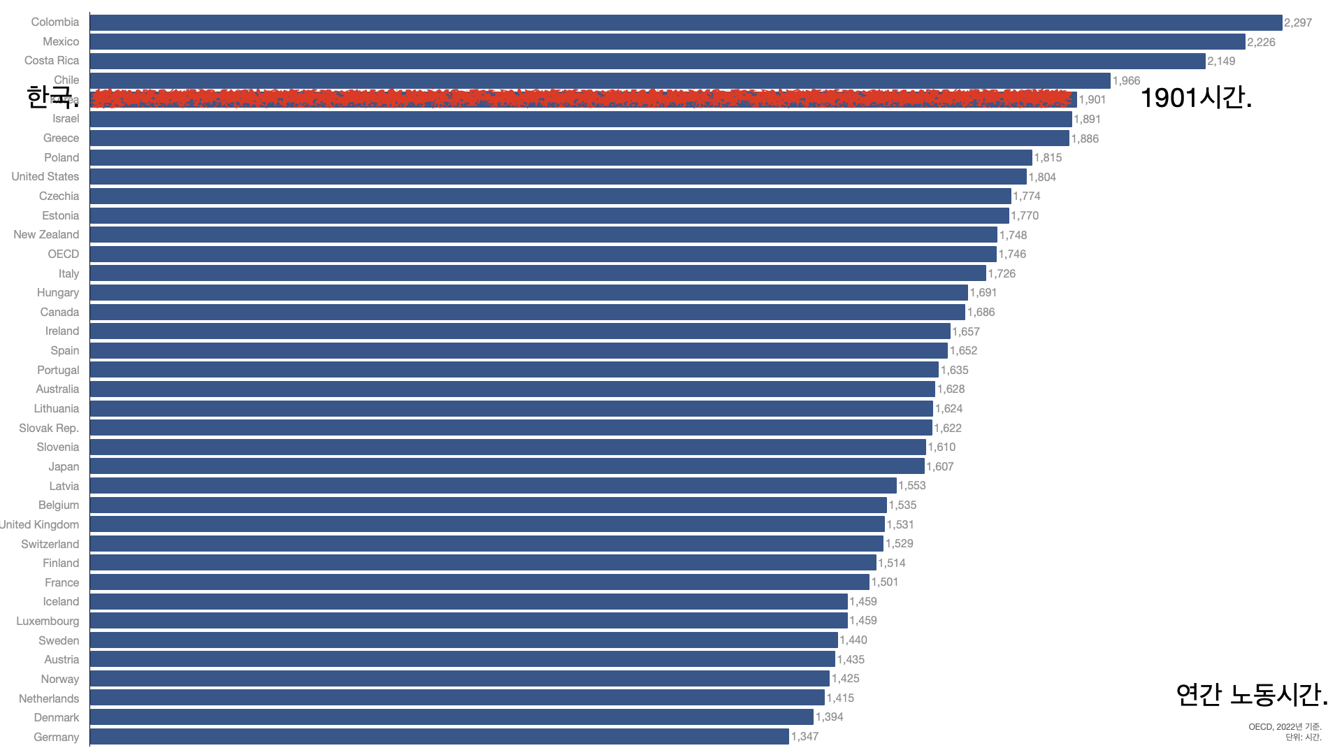 ์ง๋ํด ํ๊ตญ ํ๊ท ์ 1859์๊ฐ์ด๋ค.