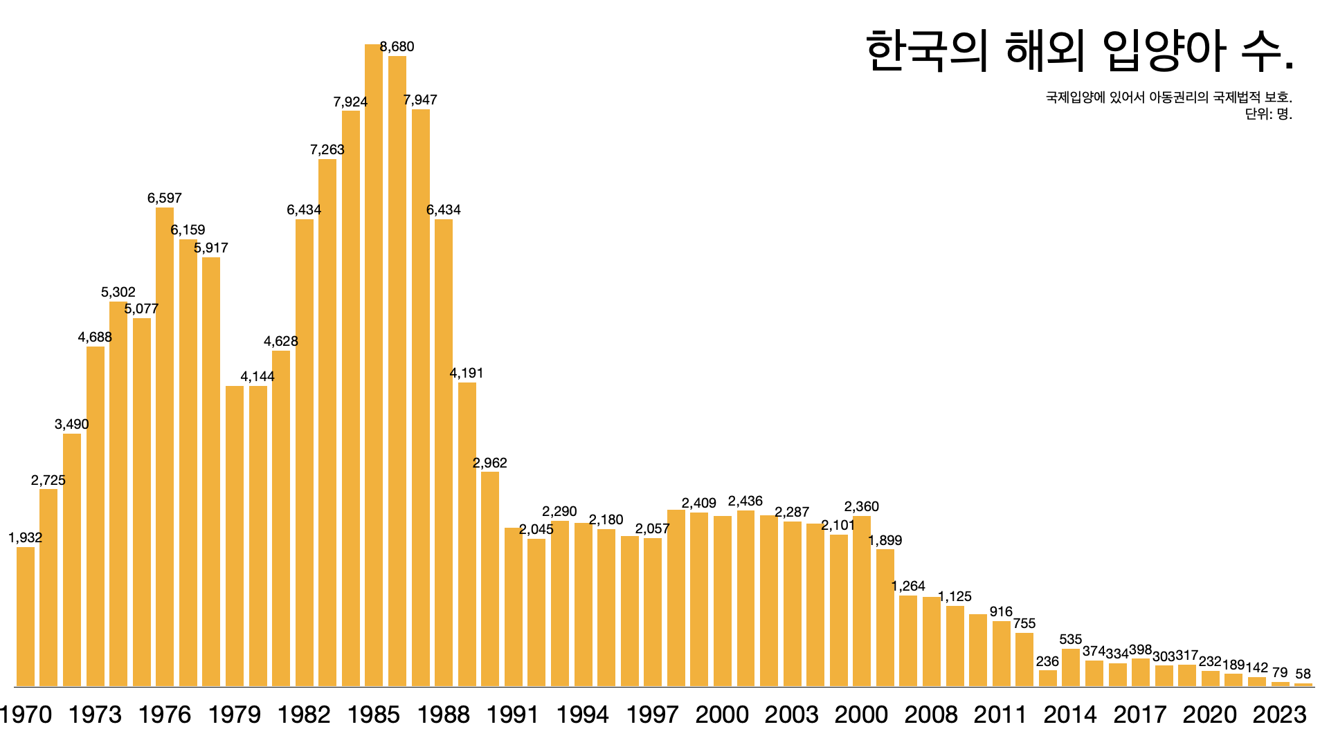 1985๋ ์๋ 8837๋ช ์ ๋ณด๋ด๊ธฐ๋ ํ๋ค. ๋๋ฆฌ ์ ์ ์ ๋๋ฅผ ๋์ ํด ํ๊ตญ์ ์ค์ง ์๊ณ ๋ ์์ด๋ฅผ ๋ฐ๋ ค๊ฐ ์ ์์๋ค. 73๋ ๋์ ํด์ธ๋ก ๋ณด๋ธ ์์ด๊ฐ 17๋ง ๋ช ์ ์ด๋ฅธ๋ค.
