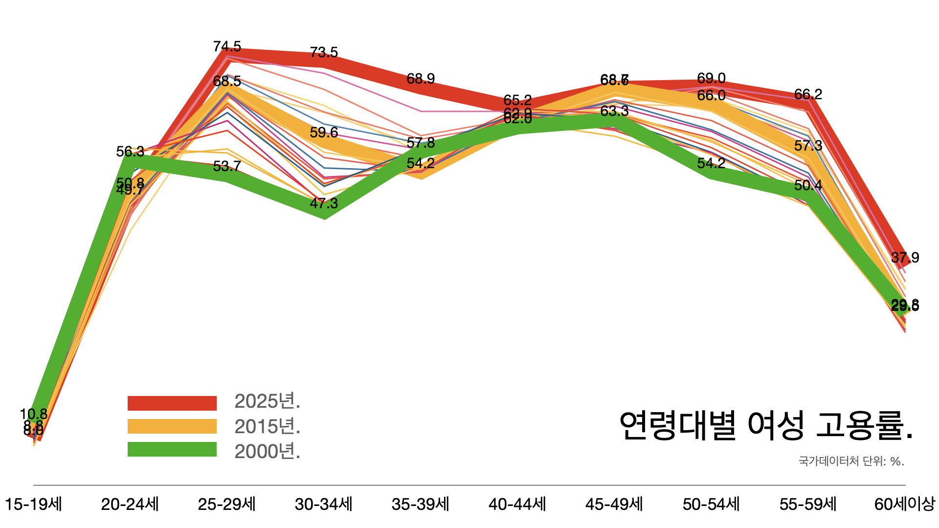 ํต๊ณ์ ๋๋ฌ๋์ง ์๋ ์ง์ค์ด ์๋ค. 20๋์ 30๋ ์ฌ์ฑ์ ๊ณ ์ฉ๋ฅ ์ด ํน ๊บผ์ก๋ค๊ฐ 40๋ ๋ค์ด ๋์ด๋๋ ํ์์ M์ ์ปค๋ธ๋ผ๊ณ ๋ถ๋ฅด๋๋ฐ 2020๋ ์ดํ ์กฐ๊ธ์ฉ ์ํ๋๋ ์ถ์ธ๋ฅผ ๋ณด์ธ๋ค.
