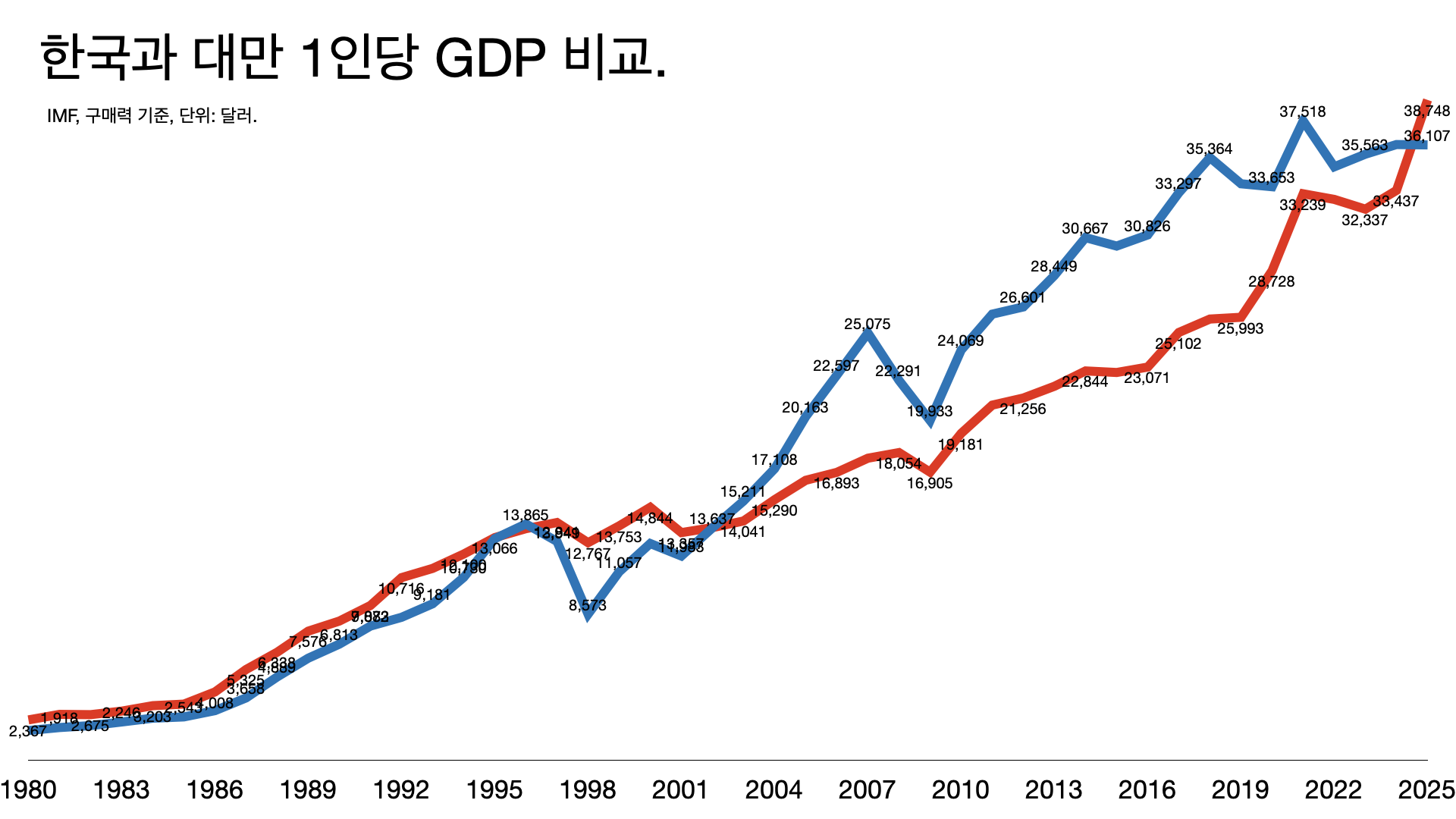 1์ธ๋น GDP ๋๋ง์ ๋ฐ๋ ธ๋ค.