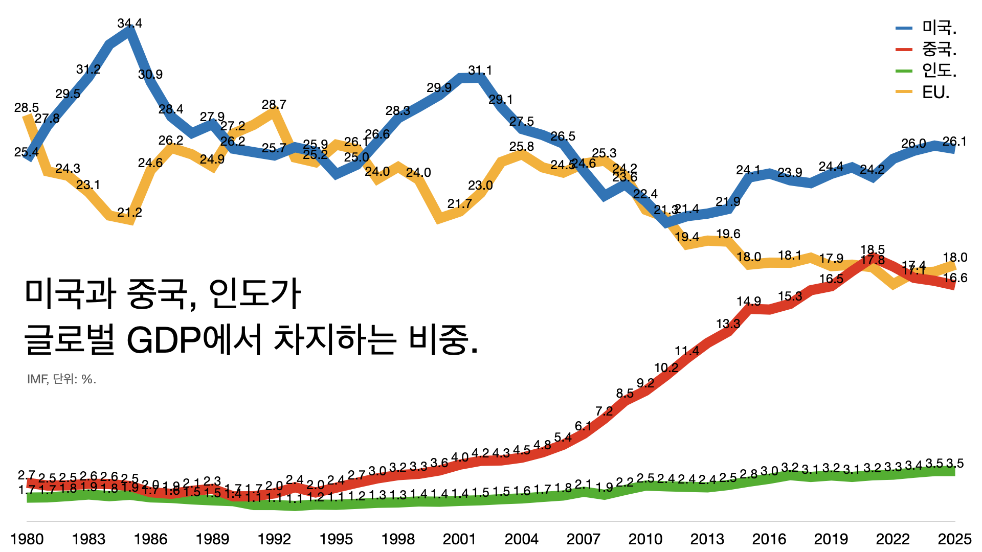 ํ์ฅ)์ ์กฐ์ ์ผ๋ณด ์ธํฐ๋ทฐ๋ค. ๋ฏธ๊ตญ๊ณผ ์ค๊ตญ์ด ๊ธ๋ก๋ฒ GDP์ 27%์ 17%๋ฅผ ์ฐจ์งํ๊ณ ์๋๋ฐ ์ธ๋๊ฐ ์น๊ณ ์ฌ๋ผ์ 3๊ทน ๊ตฌ๋๋ฅผ ๋ง๋ค ๊ฑฐ๋ผ๊ณ ๋ณธ๋ค. ์ ์กฐ์