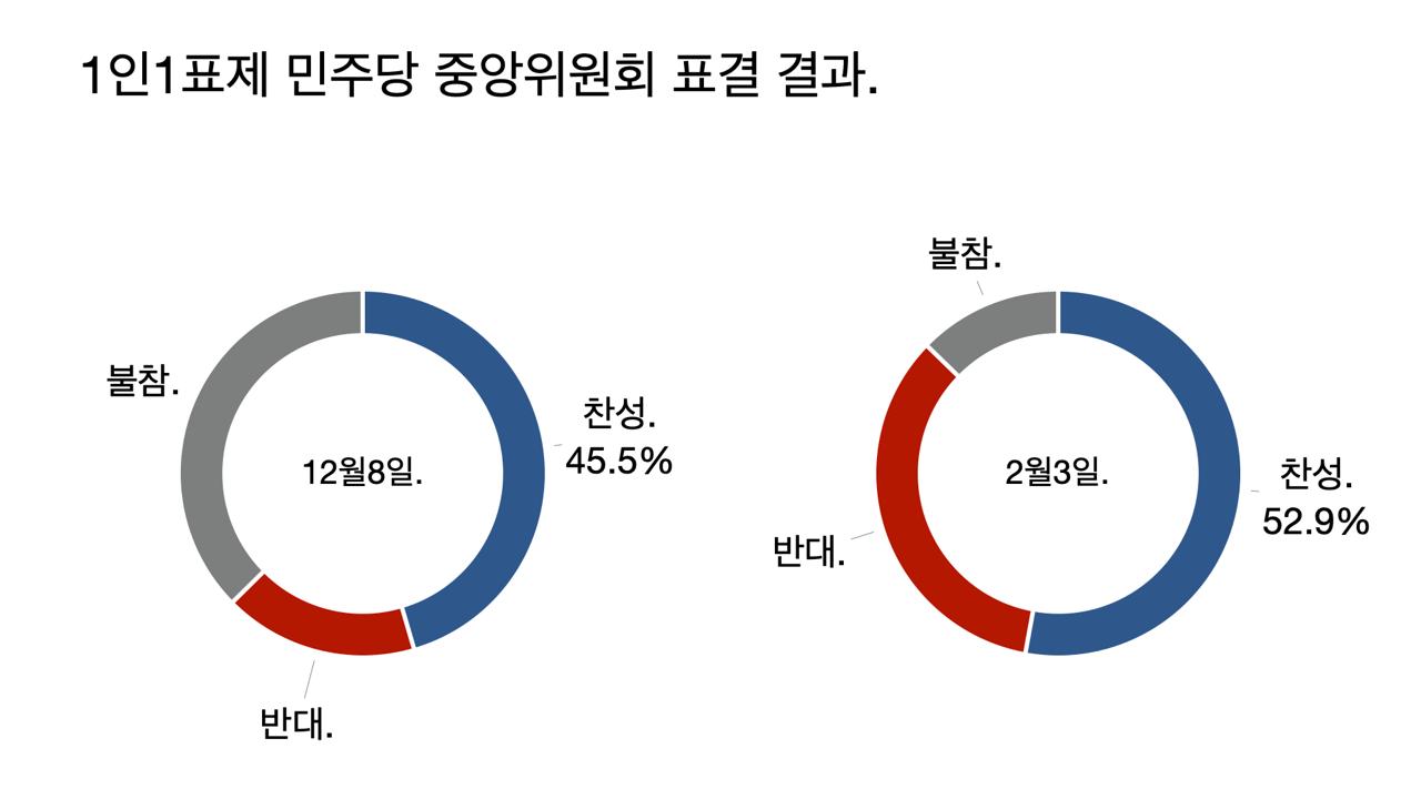 ์ด์ ๋ฏผ์ฃผ๋น ์ค์์์ํ ๊ฒฐ๊ณผ๋ 60%๊ฐ ์๋๋ผ 53%๋ผ๊ณ ์จ์ผ ๋ง์ต๋๋ค. ํฌํ ์ฐธ์ ์ธ์ ๋๋น 60%์ง๋ง ์ ์ฒด ์ธ์ ๋๋น 53%์ ๋๋ค. 50%๊ฐ ๋์ด์ผ ๊ฐ๊ฒฐ์ด๋๊น์.
