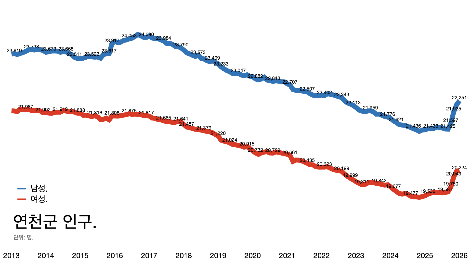 1์๋ถํฐ ์ธ๊ตฌ๊ฐ ๋์๋ค๊ฐ ๋ค์ ์ค์ด๋๋ ์ถ์ธ๋ค.